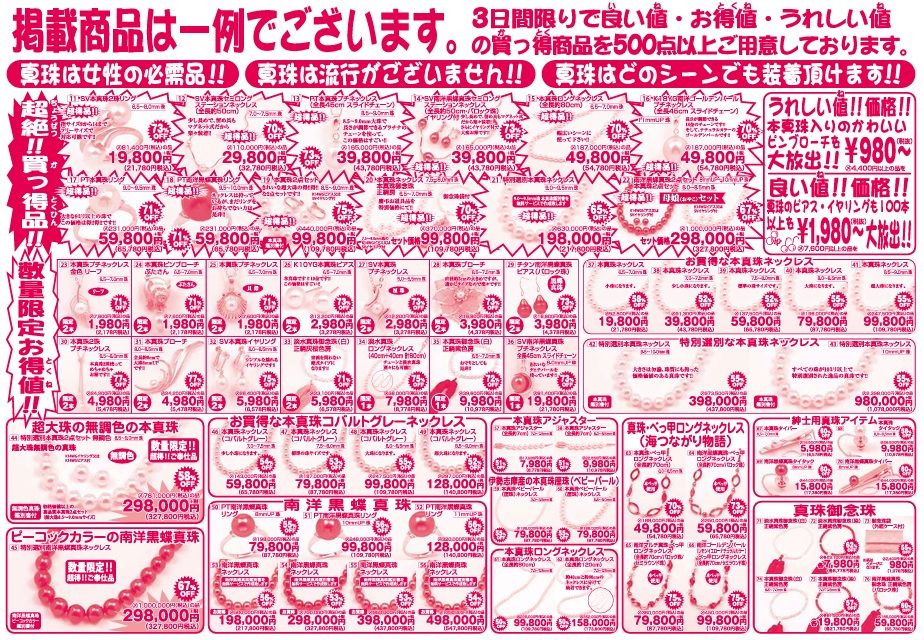 2025/07/30 ★真珠大還元市を開催いたします★ メガネのヤマシタ国分寺店では真珠大還元市を開催いたします。 現在、真珠の市場価格が高騰しております。 この三日間に是非、お得に真珠をご購入ください。 開催日時:2025年8月2日~4日(土曜~月曜日) 期間中は、お買い得品を始め、おすすめ品や厳選品を多数ご用意しております。 皆様のご来店を心よりお待ちしております。 < 一覧へ戻る >